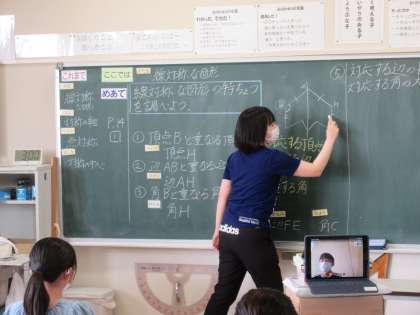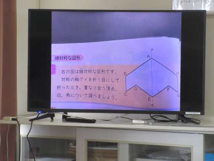6年生は算数です。「線対称な図形の特徴を調べる」をめあてにした学習でした。