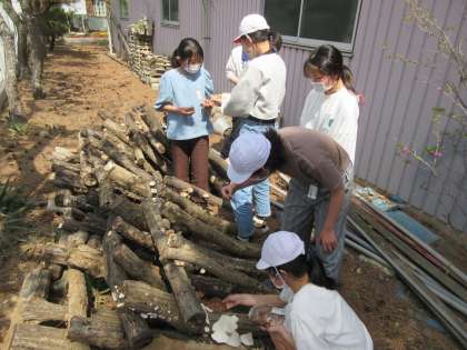 4月13日(水)6年生が椎茸取り