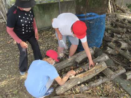 本日の昼休み、6年生が森林学習でコマ打ちした榾木から、椎茸をとりました。中には手のひらより大きくなった椎茸もありました。よいお土産ができました。