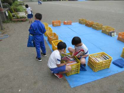 本日は、市立図書館から巡回文庫がやってくる日でした。低学年用の本は本校図書室に豊富にあるということで、今年度は高学年のみの巡回文庫としています。今日は4年生から順番に本を選びに来て、嬉しそうに借りていきました。