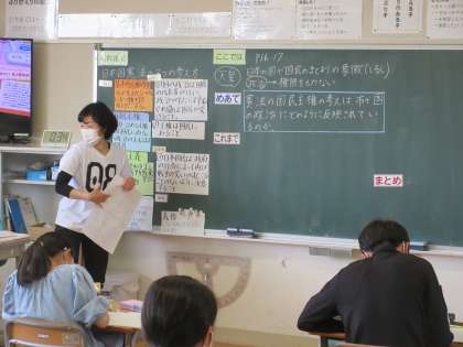 6年生の社会です。「国民主権」についての学習でした。これまでの学習の振り返りが充実しています。