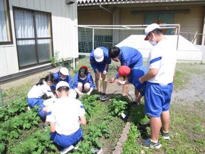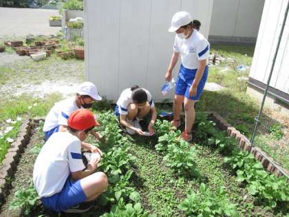 28日(木)の1校時と6校時に、ジャガイモの葉にデンプンができているかヨウ素液を使って調べます。