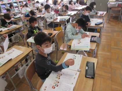 「学校たんけん」という資料で、「相手の気持ちを考える」ことを学習しました。入学したての頃の一年生がどんな気持ちだったのか思い出し、2年生になってどんな気持ちで一年生の世話をすればよいのかをみんなで考えました。