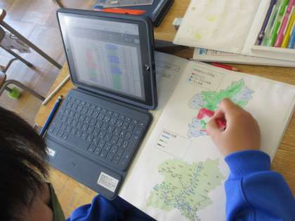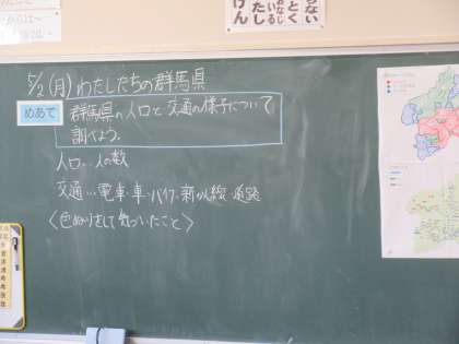 4年生の社会は群馬県の学習です。今日は人口と交通について学習していました。