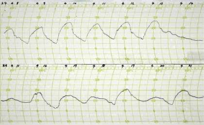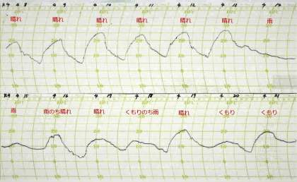 自記温度計の記録を見て、それぞれの日の天気を考えました。