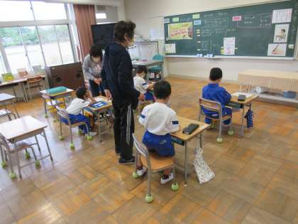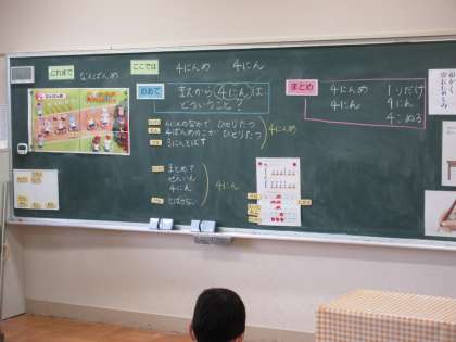 1年生は算数です。順番で4人目を考えることの学習でした。算数でもできることがだんだんと増えていきます。