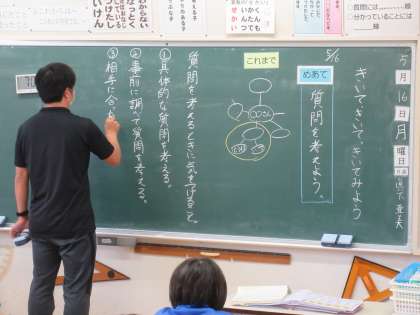 5月16日(月)授業風景〜1校時5年国語〜 公開日 2022/05/16 更新日 2022/05/16 2025できごと 5年生の国語「きいてきいてきいてみよう」の学習です。今日は質問を考えることがめあてです。考えるときに気を付けることに注意して質問を考えました。