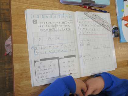 2年生の算数「引き算」の学習です。今日は2桁の引き算の仕方を考えました。