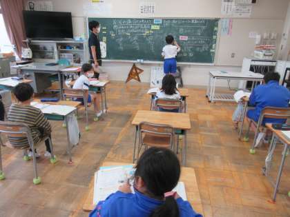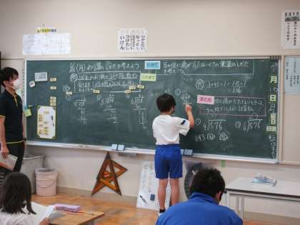 5月16日(月)授業風景〜4校時4年算数〜 公開日 2022/05/16 更新日 2022/05/16 2025できごと 4年生も算数です。授業の愛護に見に行ったので、練習問題をしている場面で、黒板が一部消されていました。