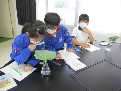 モンシロチョウの幼虫の観察をしました。