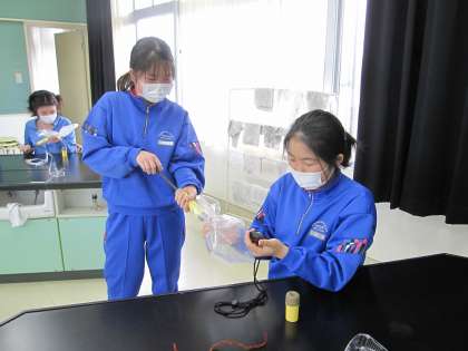 5月17日(火)授業風景〜4校時6年理科〜体のつくりとはたらき(その2) 公開日 2022/05/17 更新日 2022/05/17 2025できごと 人は、空気を吸ったりはいたりするとき、酸素の一部をとり入れて、二酸化炭素を出していることがわかりました。また、はいた空気には、水(水蒸気)もふくまれていました。