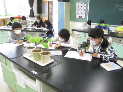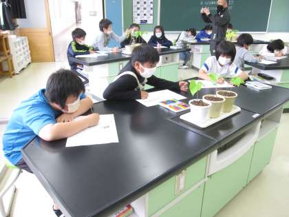 5月17日(火)授業風景〜3校時5年理科〜植物の発芽と成長(その2) 公開日 2022/05/17 更新日 2022/05/17 2025できごと 日光に当て、肥料を与えた株がもっとも元気に育ちました。