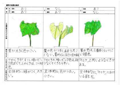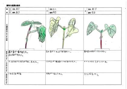 5月17日(火)授業風景〜3校時5年理科〜植物の発芽と成長(その4) 公開日 2022/05/17 更新日 2022/05/17 2025できごと 植物の成長には、日光と肥料が関係していることがわかりました。