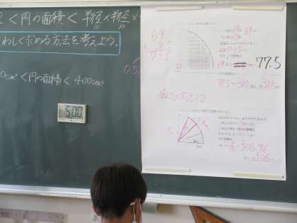 5月18日(水)授業風景〜1校時6年算数〜 公開日 2022/05/18 更新日 2022/05/18 2025できごと 6年生の算数「円の面積」の学習です。算数から数学にだいぶ近づいてきている感じがします。