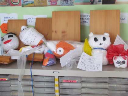5月18日(水)3年生の作品集 公開日 2022/05/18 更新日 2022/05/18 2025できごと 図書室前の廊下のところに色とりどりの図工作品が飾られています。ビニール袋の中に思い思いのものをつめて、かわいい作品になりました。