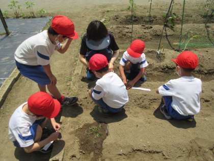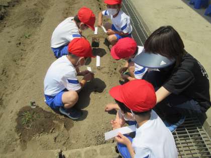 5月19日(木)授業風景〜4校時1年生活科〜 公開日 2022/05/19 更新日 2022/05/19 2025できごと 1年生の生活科「たねまきをしよう」の授業です。花壇にいろいろな植物の種をまいて育てます。実のなるものもあるので先が楽しみです。