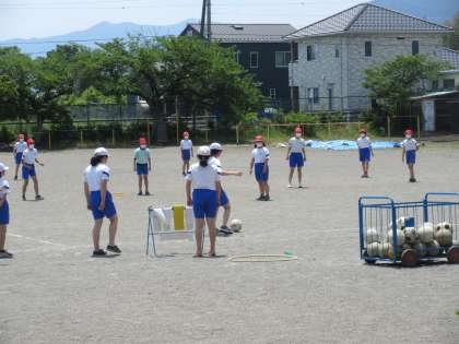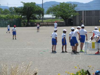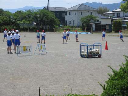 5月19日(木)授業風景〜4校時56年体育〜 公開日 2022/05/19 更新日 2022/05/19 2025できごと 56年生の体育は校庭で「フットベースボール型」のゲームをしていました。男女に分かれて2面で行っていましたが、ルールを覚えてくると、だんだんと守りも固くなってきました。