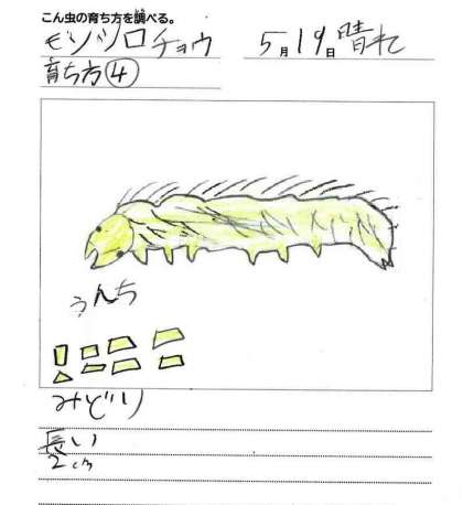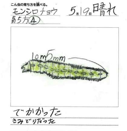 5月19日(木)授業風景〜4校時3年理科〜こん虫の育ち方(その3) 公開日 2022/05/19 更新日 2022/05/19 2025できごと キャベツの葉は穴だらけになっています。ふんも大きくなりました。