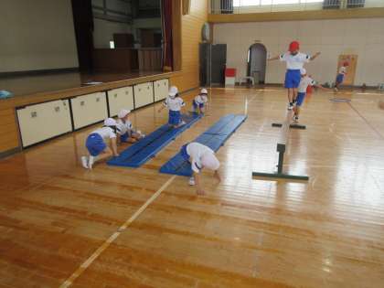 5月20日(金)授業風景〜2校時12年体育〜 公開日 2022/05/20 更新日 2022/05/20 2025できごと 1・2年生の合同体育です。体育館フロアの周囲にいろいろな器具を使った場を用意して、サーキットトレーニングのような活動を行っていました。