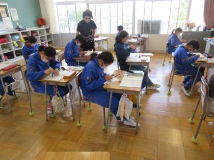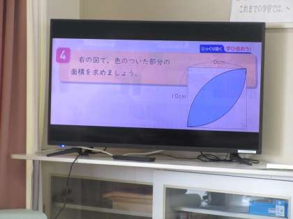 6年生の算数です。円の面積の求め方を学習しましたが、今日はそれを活用していろいろな形の面積を求めることに挑戦しました。