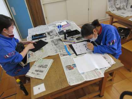 6年生の図工「墨と水から広がる世界」の授業です。水墨画の世界でした。どの子の作品も芸術作品に見えました。