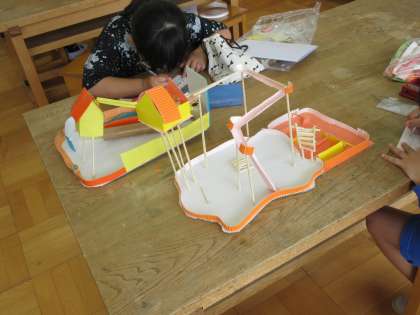 4年生の図工「コロコロガーレ」の授業です。今日の授業で仕上げになります。最後には、みんなで遊びました。