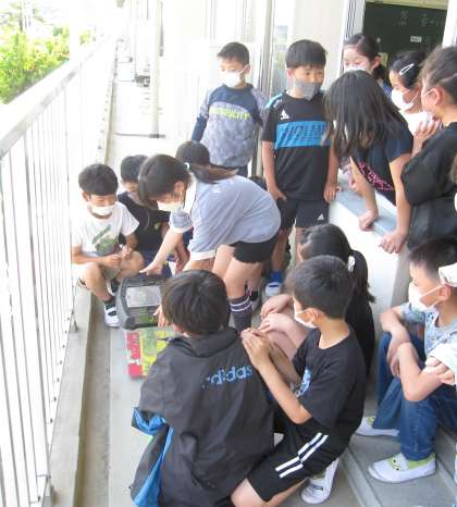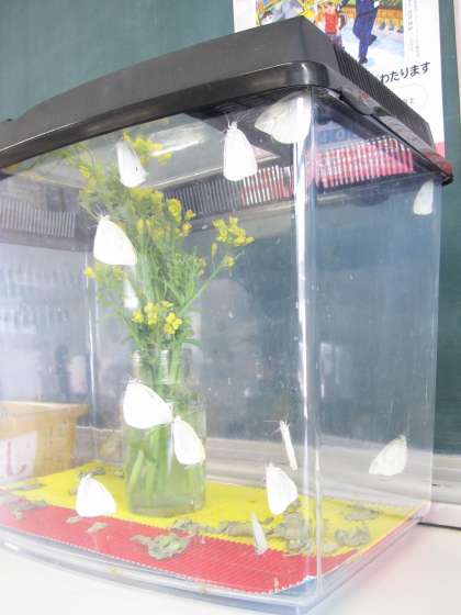 たまごから観察を続けてきたモンシロチョウが羽化したので、感謝の気持ちを込めて「さよなら」をしました。みんな元気に飛び立っていきました。