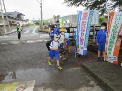 今日も曇り空で少し肌寒い天気です。なかなかプール学習ができません。今朝も、地域の方々をお迎えして「地域で触れ合うあいさつ運動」を行いました。このような機会を設定すれば、あいさつがかなりよくできるようになっています。