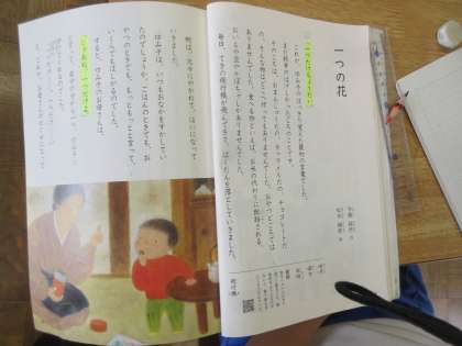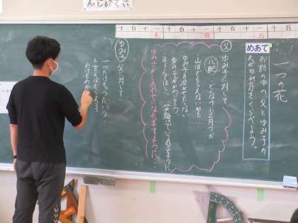 4年生の国語「一つの花」の授業です。話の中での父とゆみ子の描かれ方の違いを比べる授業でした。