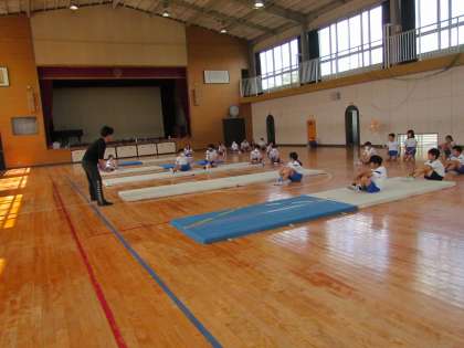 6月9日(木)授業風景〜5校時3.4年体育マット運動〜