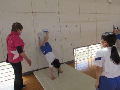 3.4年生もプールには行けませんでしたが、体育館でマット運動を行いました。【前転】【開脚前転】それから授業終わりには【逆立ち】に取り組んでいます。汗をかきながら頑張っていました。