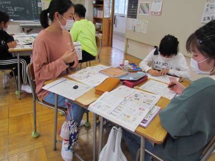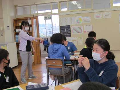 「綿」「ポリエステル」、生地によって特徴が違うことを学習しました。暑くなったらどんな服装がいいかも考えました。