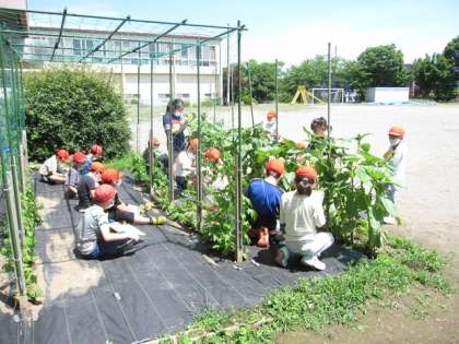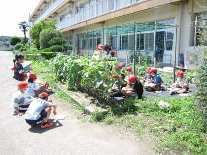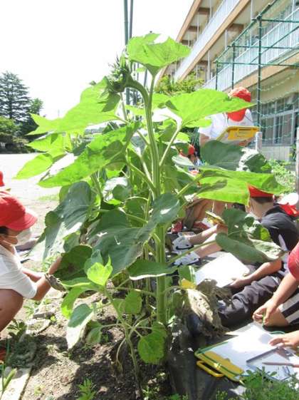 ヒマワリとホウセンカの育ち方をくらべながら調べました。