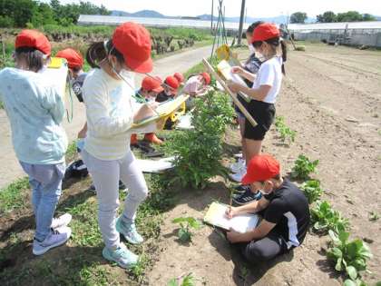 6月13日(月)授業風景〜5校時3年理科〜植物の育ち方(その2) 公開日 2022/06/13 更新日 2022/06/13 2025できごと 日曜日の昼の激しい雨と風でヒマワリがたおれてしまい、くきが曲がってしまっていました。棒で補強しましたが、この先が心配です。