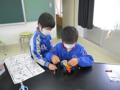 説明書を見て班で相談しながら回路を組みました。