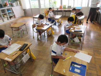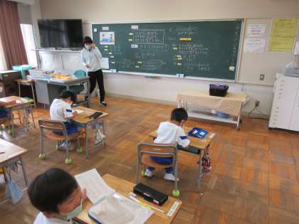 6月16日(木)授業風景〜2校時1年算数〜 公開日 2022/06/16 更新日 2022/06/16 2025できごと 1年生の算数「引き算」の学習です。文章問題から立式し、答えを求めます。図を書いて求めることが大切です。満点ですごいです。