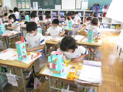 6月20日(月)授業風景〜6校時2年図工〜まどからこんにちは(その1) 公開日 2022/06/20 更新日 2022/06/20 2025できごと カッターナイフをつかって、かみにまどをつくりました。