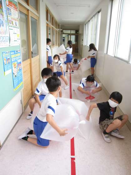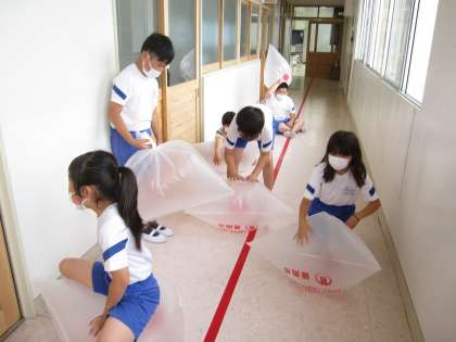 空気をふくろにとじこめ、おしてみて気付いたことを話し合いました。
