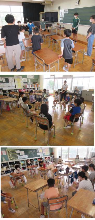 6月24日(金)たてわり集会 公開日 2022/06/24 更新日 2022/06/24 2025できごと 今朝は本年度最初のたてわり集会がありました。最初なので、各班ごとに各教室に集まり、工夫を凝らした自己紹介などをして顔を覚え合いました。上級生が下級生の面倒をよく見てくれました。これからいろいろな活動をしていく意欲がわいてくる集会となりました。