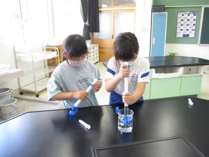 6月27日(月)授業風景〜3校時4年理科〜とじこめた空気や水(その1)