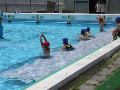 一気に梅雨が明けてしまったので、連日のようにプールに入れます。今日は中学年が美九里西小のプールに行きました。気持ちよさそうです。