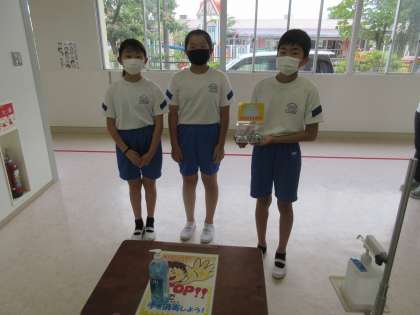 本日の朝、児童会主催の一円玉募金が実施されました。本部役員の児童が両玄関で待ち受け、募金を持参してくれた児童から回収をしました。たくさんの思いやりの気持ちが集められました。1学期に集められた金額を合計すると5926円になりました。今後は、ウイズを通して、世界の恵まれない子供たちのために使われたり、被災をした人々のために使われたりします。
