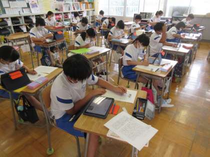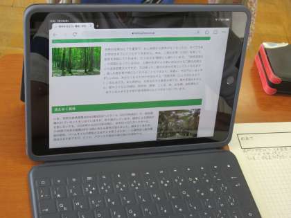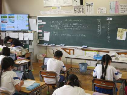 5年生の国語「みんなが過ごしやすい街へ」の学習です。調べたことを文章に書く学習です。タブレットを使って調べていました。