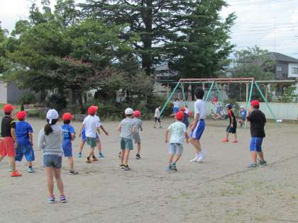 チャレンジウィーク2日目が始まっています。朝は曇り空でしたが時間がたつにつれ、青空が見え、暑くなってきました。小学生に混ざって中学生も休み時間を過ごします。久しぶりのドッジボール、楽しいようです。