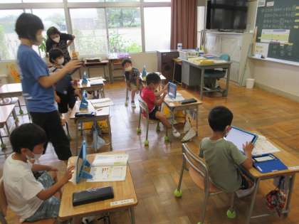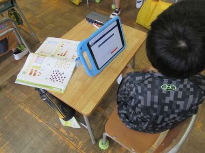 1年生の算数「おおきなかず」の学習です。今日は20より大きな数について考えました。終末にはタブレットのミライシードで練習問題を行いました。