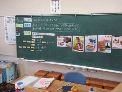 4年生も図工で、「おもしろだんボールボックス」の学習です。だんボールをまず箱に組み立て、そこから切り込みを入れて表現したい形にしていました。飾りも付けていくのでこれからどんな形になるか楽しみです。