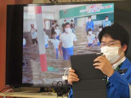 今日は市役所と県庁から防災を専門に仕事をしている方々が来校され、授業をしていただきました。藤岡市から配付されているハザードマップや準備してもらった映像を見たりしながら話を聞きました。東小校区も洪水の時に危険水位になる場所が多くあることも確認でき、よい学習の時間となりました。ありがとうございました。
