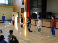 4年生の音楽です。グループになってリズム打ちのアンサンブルを作っていました。「これがいいんじゃない」「こういうのもいいよ」と考えを出し合う声が聞こえました。