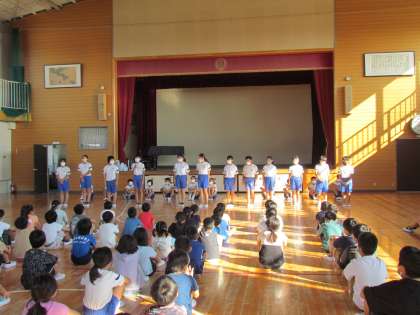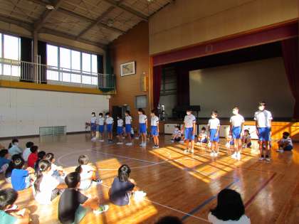 運動会の次は【陸上教室記録会】です。朝は【壮行会】が行われ、選手一人一人が自分の決意を発表しました。校長先生からは自己記録の更新をしようとお話がありました。東小の代表としてがんばってきてくださいね。