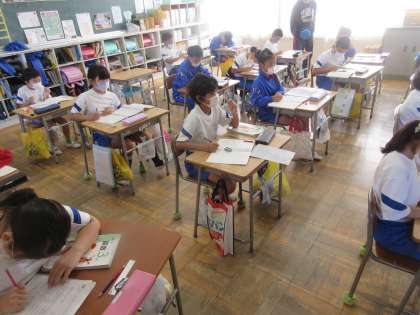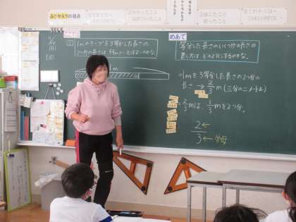 3年生の算数は分数の初歩的な学習をしています。今日は分数の表しかた、意味について、基本的なことを確認していました。